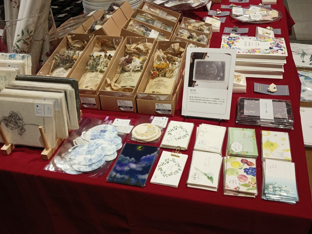 素敵な作家さんたちと共に星月夜の紙雑貨商品も丁寧に並べていただいています。